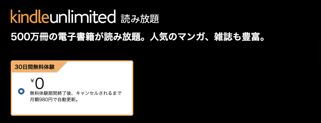 Kindle Unlimitedは、Amazonの電子書籍「Kindle本」500万冊が読み放題のサブスクリプションサービスです。